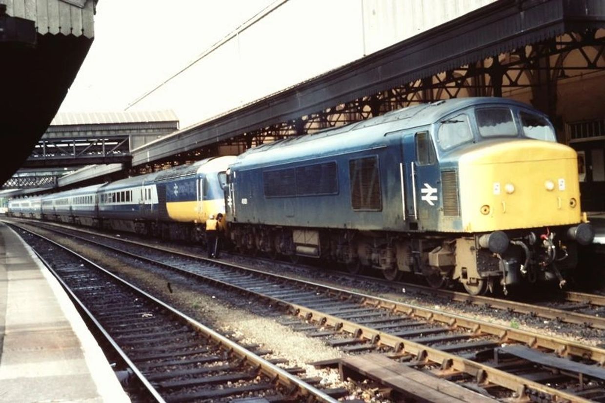 1981. A Peak being pressed into unexpected passenger action at Exeter St Davids on 29/04/1981. The 1525 Paddington - Penzance HST set was in trouble and assistance needed providing in the form of 45 051.