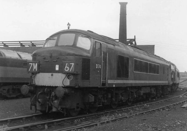 1967. D74 on Saltley MPD 21/05/1967. note the small disc covering the hole used for communications when on Royal Train duty.