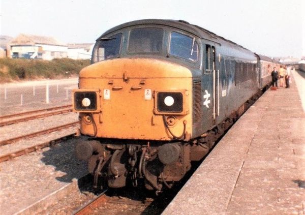 1981. Late in its working life, here is 45 053 at Newquay on 29/08/1981. Photographer Clive Smith takes up the tale " 45053 basks in the sun on the 09.50 Newquay - Newcastle on Saturday 29th August 1981. After a Friday covering peaks on various relief trains I had ended up at Wolverhampton on 45054, followed by 45123 from Brum to Cheltenham for a few hours in the Midland Hotel outside the station with Ken Williams and Kev McCarthy. I seem to remember this was a bastion of Flowers Original ale. One of the first overnights heading west was the Nottingham - Newquay at 00.01 scoring with 45046. I think this was booked a loco change at Newton Abbot for an engine off the depot there as the train was booked half an hour at the station. Fully expecting to bale out at 03 blip we were pleasantly surprised when 45053 was the chosen loco so pulled down the blinds of our compos, turned the lights off (or not if the bulbs had gone out the window somewhere near Gloucester) and continued with our zedzz prior to the thrash up Luxulyan bank on load 10, followed by the standard greasy fried breakfast at Cornwall's premier resort. 45053 worked the pictured train as far as Plymouth where 45007 took over. Halcyon days."